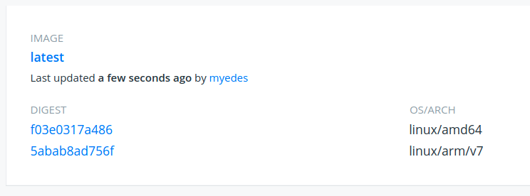 $ DOCKER_BUILD_KIT=1 DOCKER_CLI_EXPERIMENTAL=enabled docker buildx build --platform linux/arm/v7,linux/amd64 -t ${DOCKER_REGISTRY_PREFIX}/stripe-slack-notifier:latest --push .A new Docker image is now available on the Docker registry for both amd64 and armv7 architectures:
