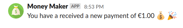 slack.post(text=f"You have a received a new payment of {amount} :moneybag: :tada:")